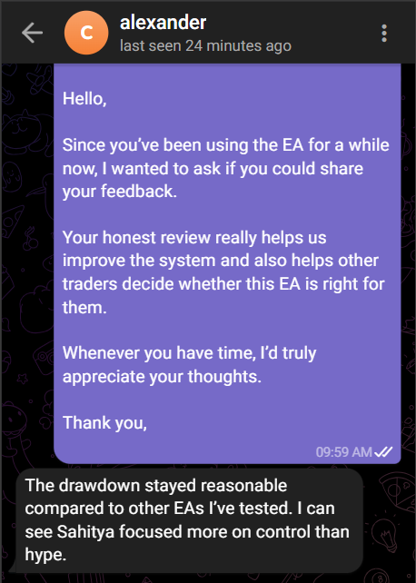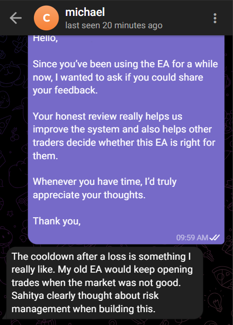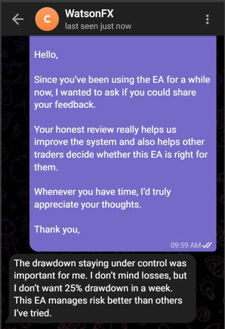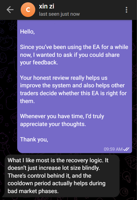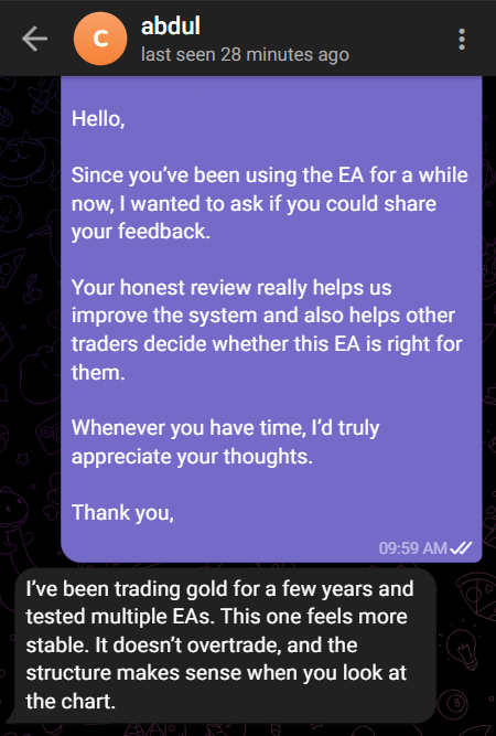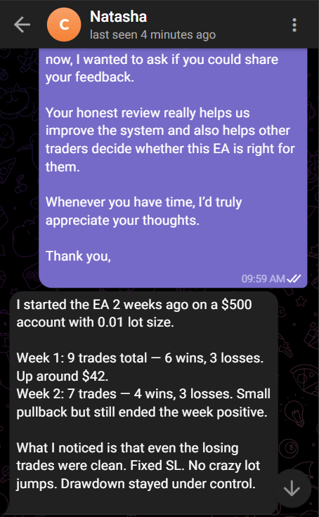 Every trade uses predefined take profit and stop loss levels. This keeps risk controlled, prevents emotional exits, and helps maintain lower drawdown by avoiding random decision changes during live trades.